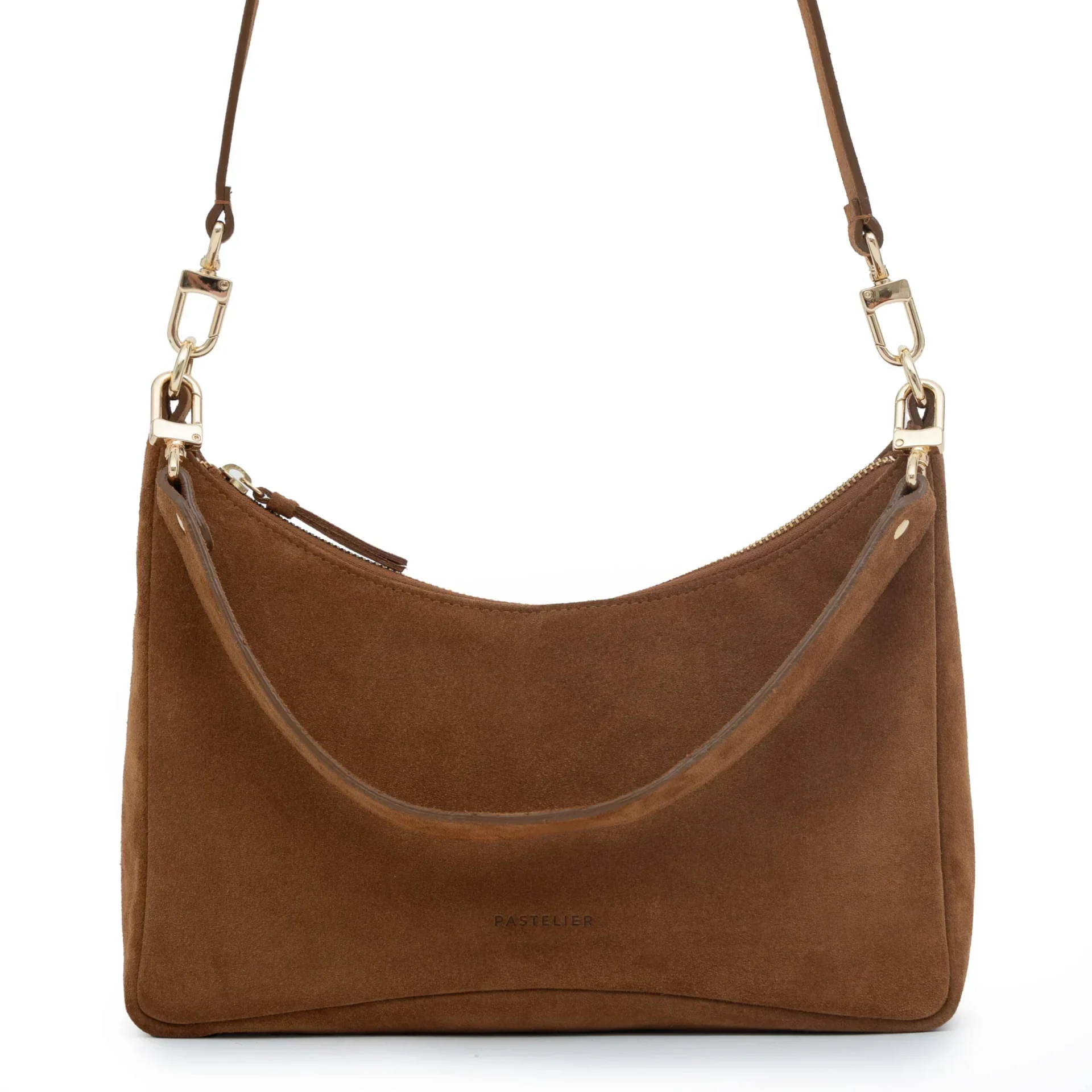 Model FORMA – stylowa torebka o nowoczesnym, prostokątnym kroju z delikatnymi łukami, która wykonana jest z wodoodpornego zamszu. Idealna do codziennego użytku – z przeznaczeniem do noszenia w ręku, na ramieniu lub wersji crossbody. W środku ma jedną, dużą komorę (mieści format A5) i dwie mniejsze kieszenie (w tym jedna na zamek). Torebka posiada dodatkowy dłuższy pasek z regulacją i krótką rączkę. Posiada okucia w kolorze złota, materiałowe wykończenie w środku w odcieniu różowym i jest zamykana na zamek. Klasyczny a zarazem wyjątkowy fason doda elegancji i szyku każdej stylizacji.